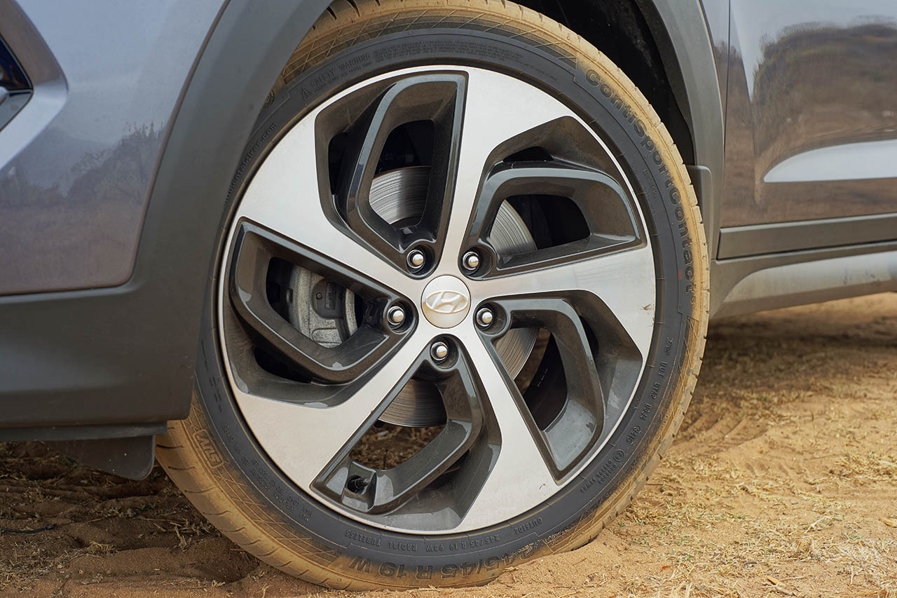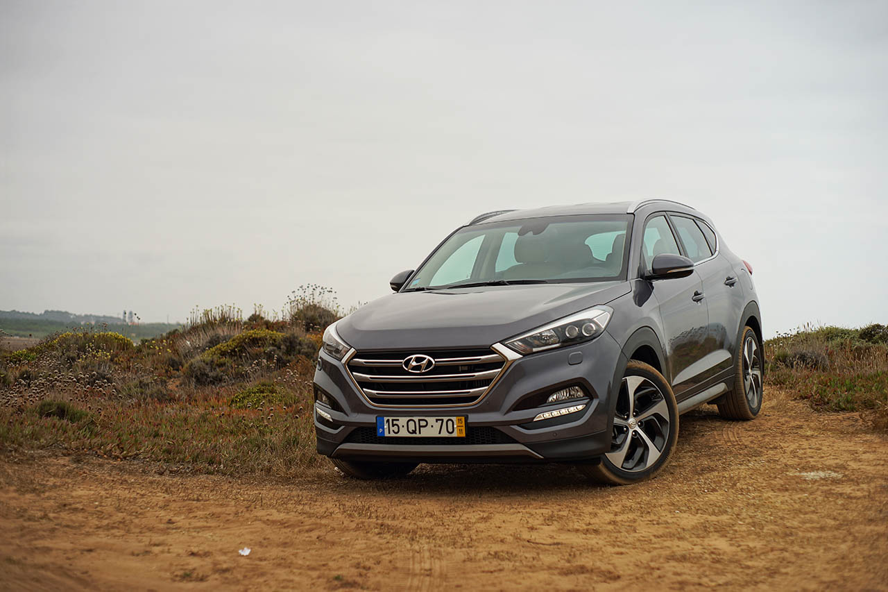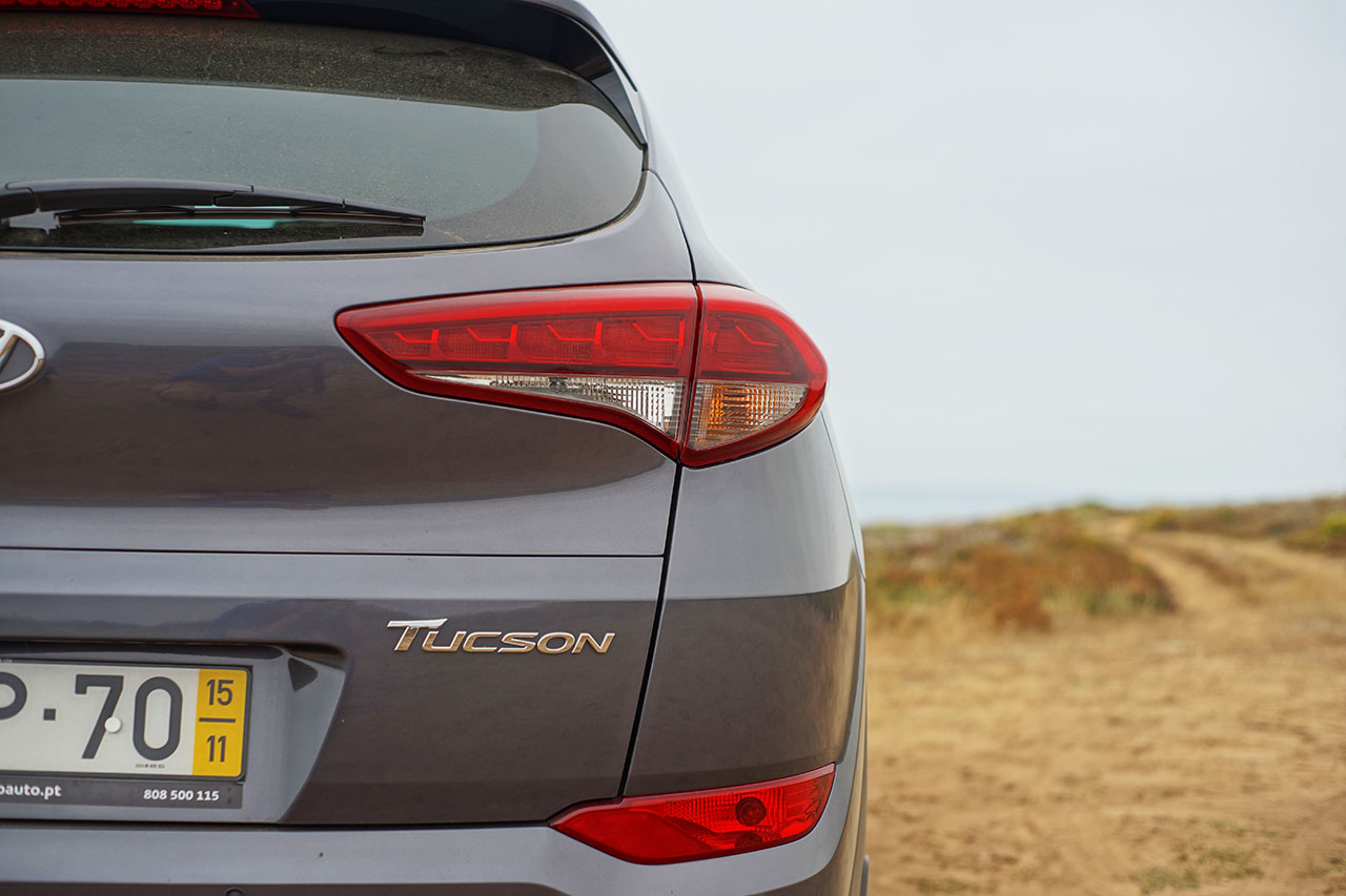 Lançado em Portugal no final do ano passado, o Tucson revela-nos um empenho impressionante, por parte da equipa de designers da Hyundai, em termos de visual exterior, sendo um modelo marcante graças à imponente frente, de onde se destaca a enorme grelha hexagonal com três lâminas horizontais cromadas, as ópticas rasgadas, luzes diurnas em LED colocadas nas extremidades e umas elegantes jantes de liga leve, que neste modelo em particular, eram de 19 polegadas.