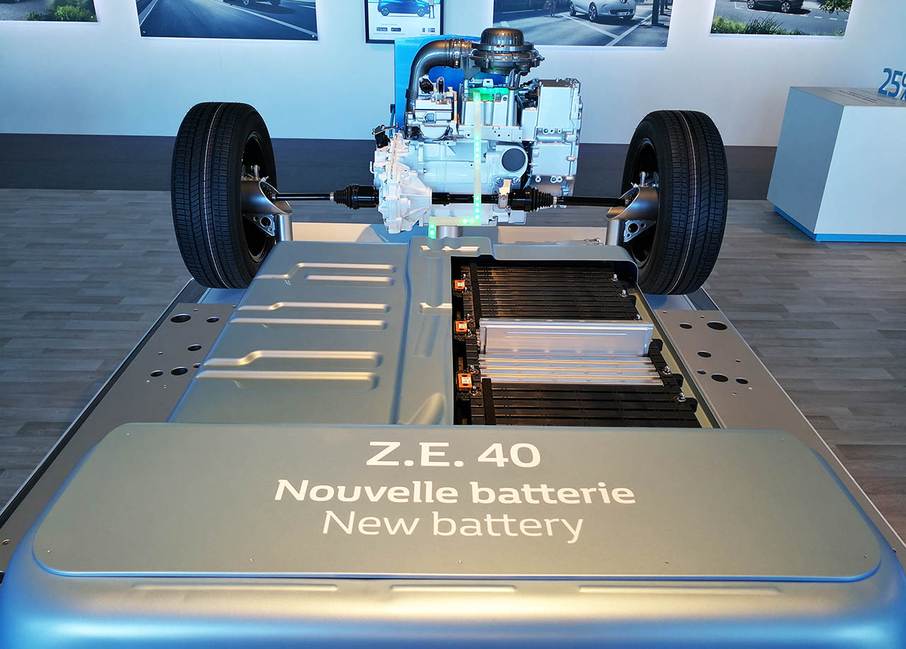Neste destino intermédio tivemos acesso à apresentação, onde foram explicadas as novidades e diferenças entre este ZOE Z.E. 40 e o anterior modelo. Como seria de esperar, a grande novidade é a nova bateria, desenvolvida pela LG Chem, que conseguiu a proeza de, no mesmo espaço, duplicar a densidade da capacidade das células de iões de lítio, sendo a bateria deste novo modelo composta por 192 células distribuídas por 12 módulos, garantindo assim uma capacidade total de 41 kWh úteis, praticamente o dobro da anterior bateria, que tinha uma capacidade de 22 kWh úteis, tendo o peso do conjunto aumentado apenas 15 kg.