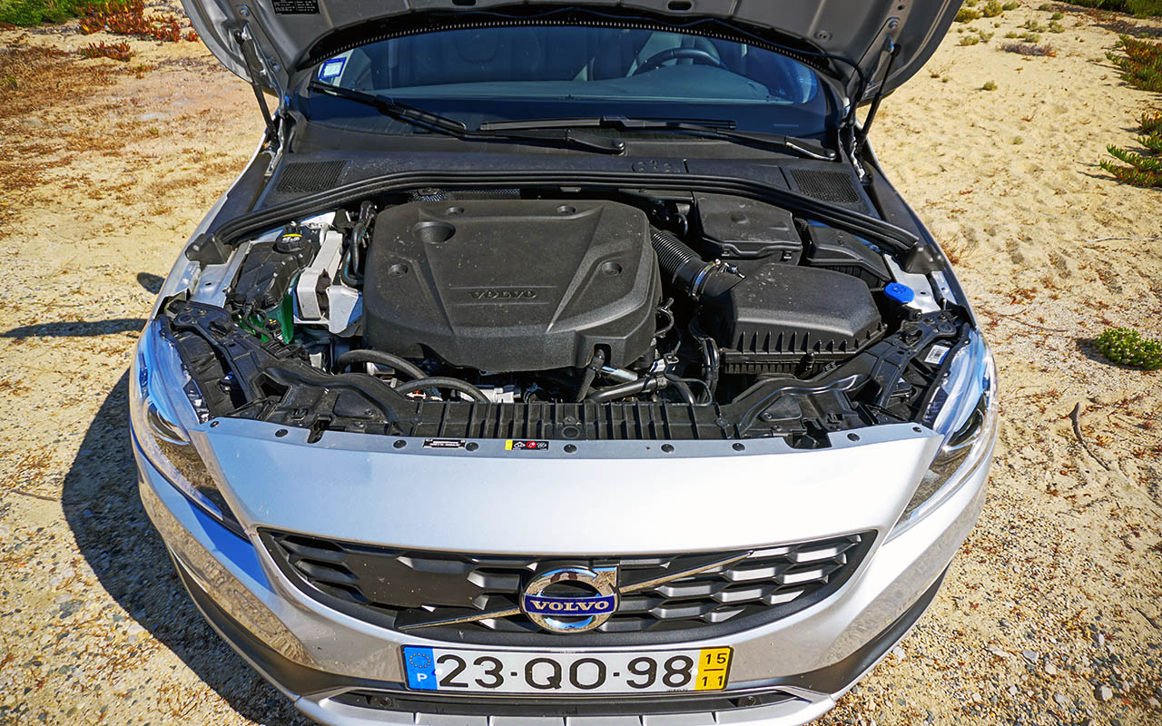 Em termos de motorização, este modelo vem equipado apenas com a motorização diesel D4, ou seja, o nosso conhecido motor Drive-E de quatro cilindros e dois litros de cilindrada, que neste caso em particular debita 190 cavalos de potência e 400 Nm de binário. Neste modelo testado, esta motorização vinha acompanhada pela mais recente geração da caixa automática Geartronic, com 8 velocidades, e um comportamento significativamente melhor que a anterior de 6 velocidades, tanto em termos de desempenho (maior rapidez na resposta e nas passagens), como em termos de eficiência, estando a Volvo a anunciar uma melhoria em termos de 0,5 l/100km e 10 g/km de emissões de CO2.
