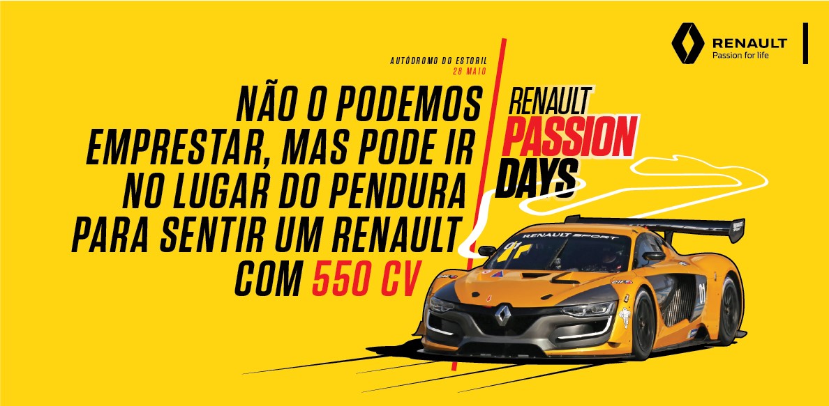 Se sempre sonhou em ser piloto (nem que seja por um dia), se sempre quis conhecer, por dentro, as curvas do Circuito do Estoril, ou se o seu desejo sempre foi experimentar as sensações dentro de um verdadeiro automóvel de competição da última geração, percebendo como um piloto que passou pela F1 lhe pode extrair todo o “sumo”, então não precisa de procurar mais. Os Renault Passion Days vão-lhe proporcionar isso tudo e… muito mais, através da possibilidade de desfrutar das emoções de duas referências da gama Renault Sport: o Renault Clio R.S. ou Mégane GT.