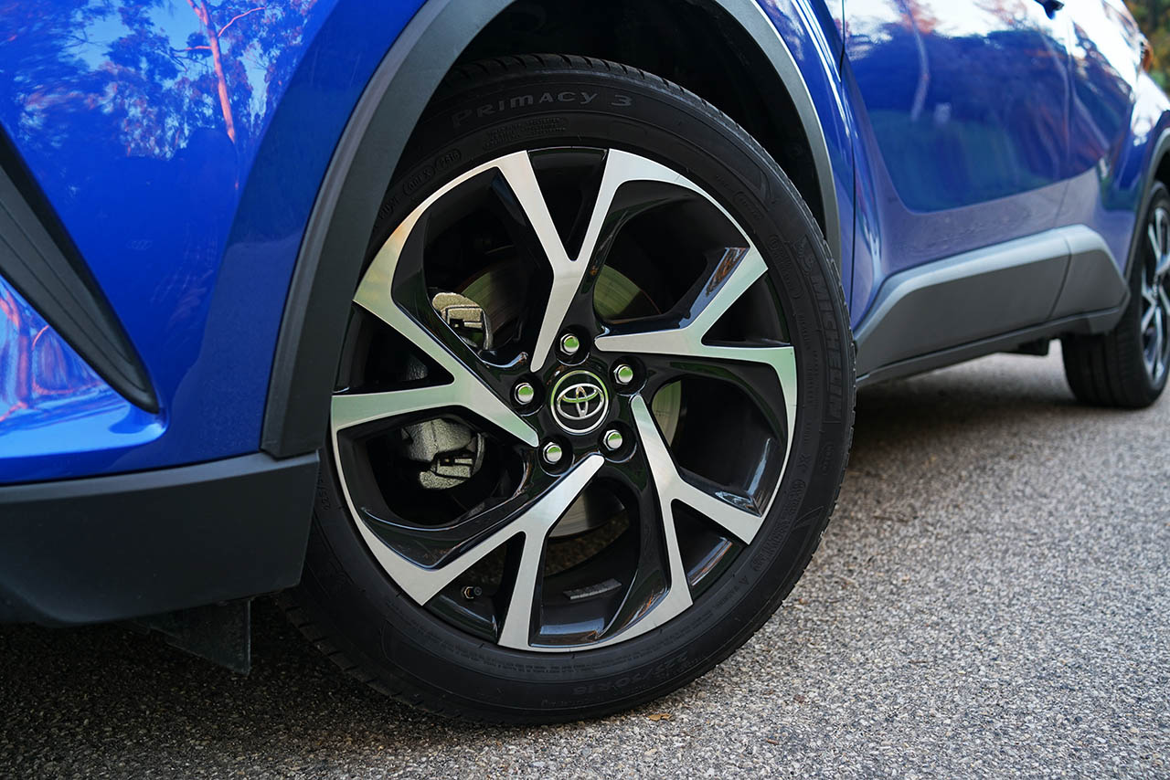 Com um peso de 1320 kg, e uma suspensão do tipo McPherson à frente com barra estabilizadora de grandes dimensões e suspensão traseira multilink, é de esperar um comportamento surpreendente, especialmente para um Toyota. Não me levem a mal, mas um Corolla, ou até mesmo um Auris, nunca foram reconhecidos pelo elevado prazer de condução, mas esta configuração na suspensão, aliada à referida plataforma TNGA permitem tornar o C-HR num veículo agradável de conduzir, especialmente nesta versão 1.2T, pois a remoção do peso das baterias e do sistema híbrido da versão HSD, garantem-lhe um comportamento mais preciso e previsível. É estranhamente divertido. Até a direcção é boa.