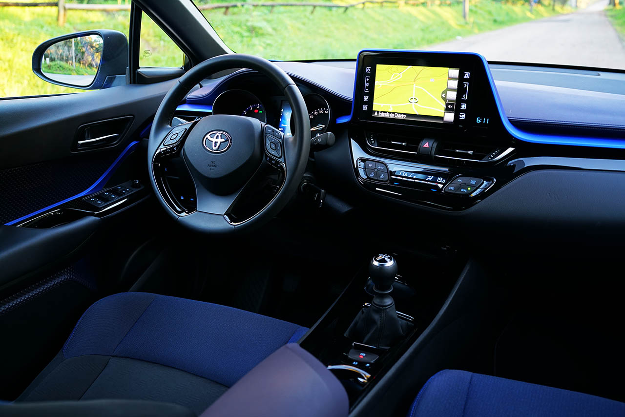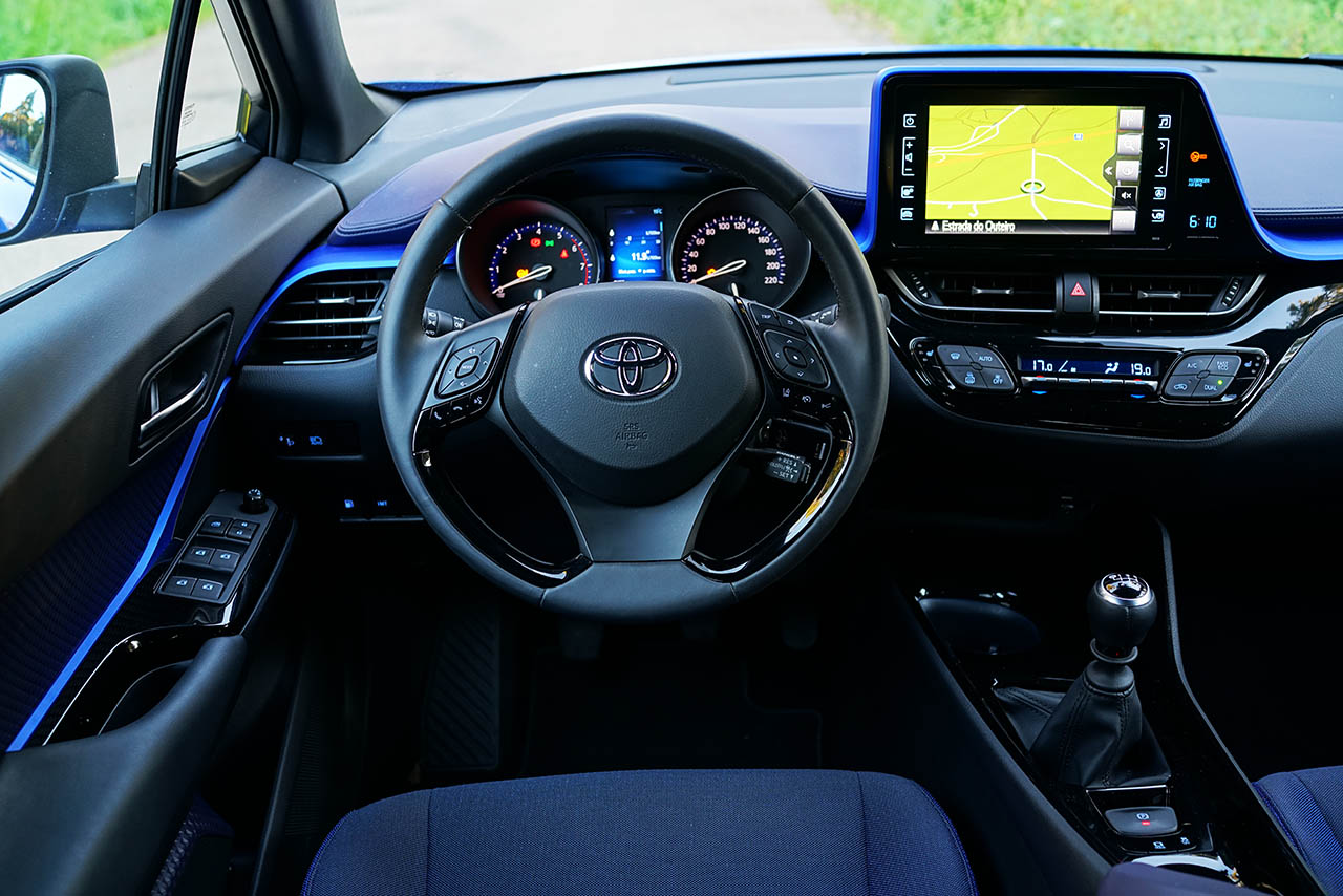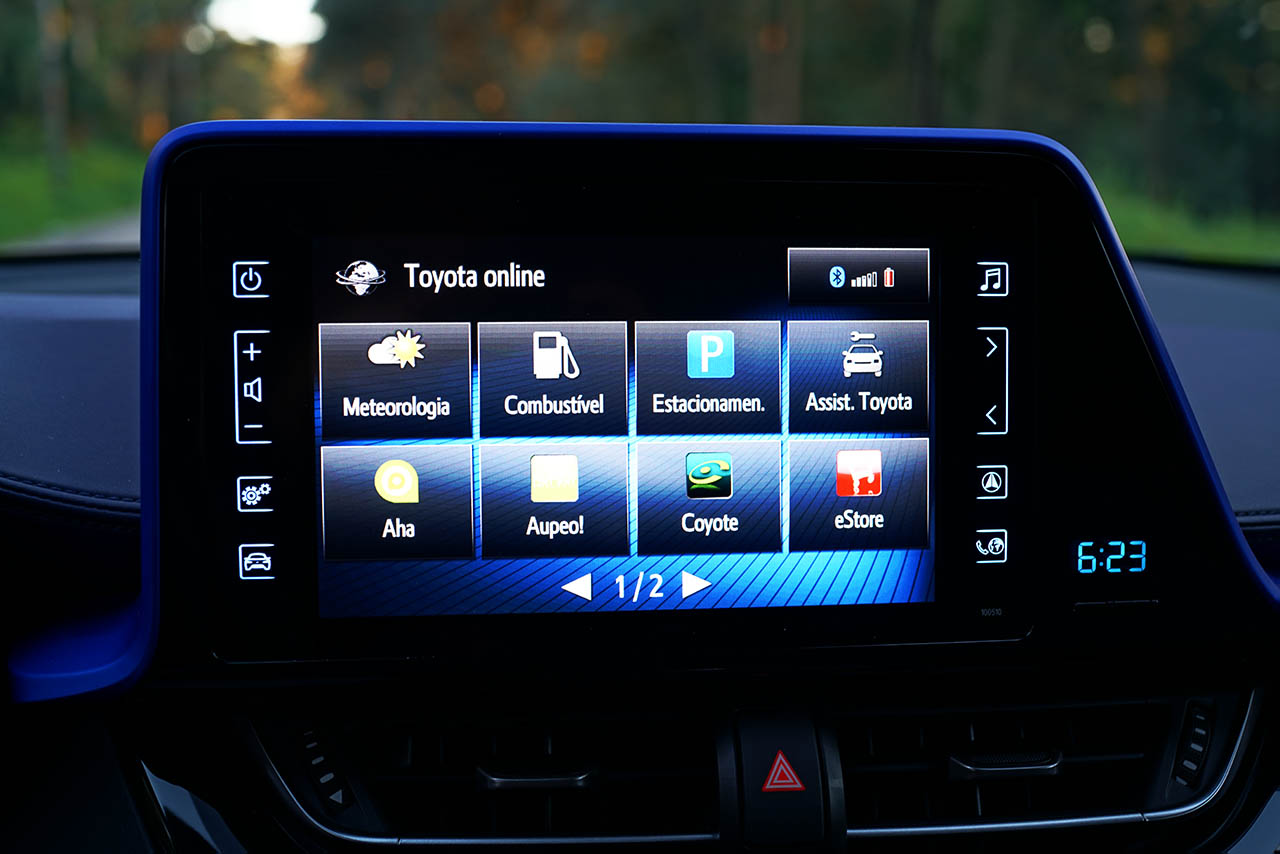 E já que falo em segurança, a Toyota não poupou os sistemas de assistência à condução, com o sistema Toyota Safety Sense a integrar o Cruise-Control Adaptativo com sistema de pré-colisão com reconhecimento de peões, avisador de mudança de faixa de rodagem com assistência na direcção, leitor de sinais de trânsito e assistente de máximos. Igualmente presente está o assistente de estacionamento, embora esteja limitado a estacionamentos em paralelo. Outra limitação sentida foi no software utilizado pelo sistema de infoentretenimento, visto ser praticamente igual ao usado nos restantes modelos da marca. Este software, embora simples e eficaz, peca por ter um grafismo demasiado nipónico, merecia algo mais actual, com animações, e maiores funcionalidades, como o suporte para Apple CarPlay ou Android Auto, como os rivais começam a oferecer.