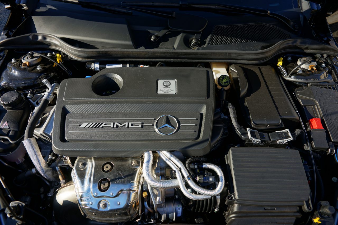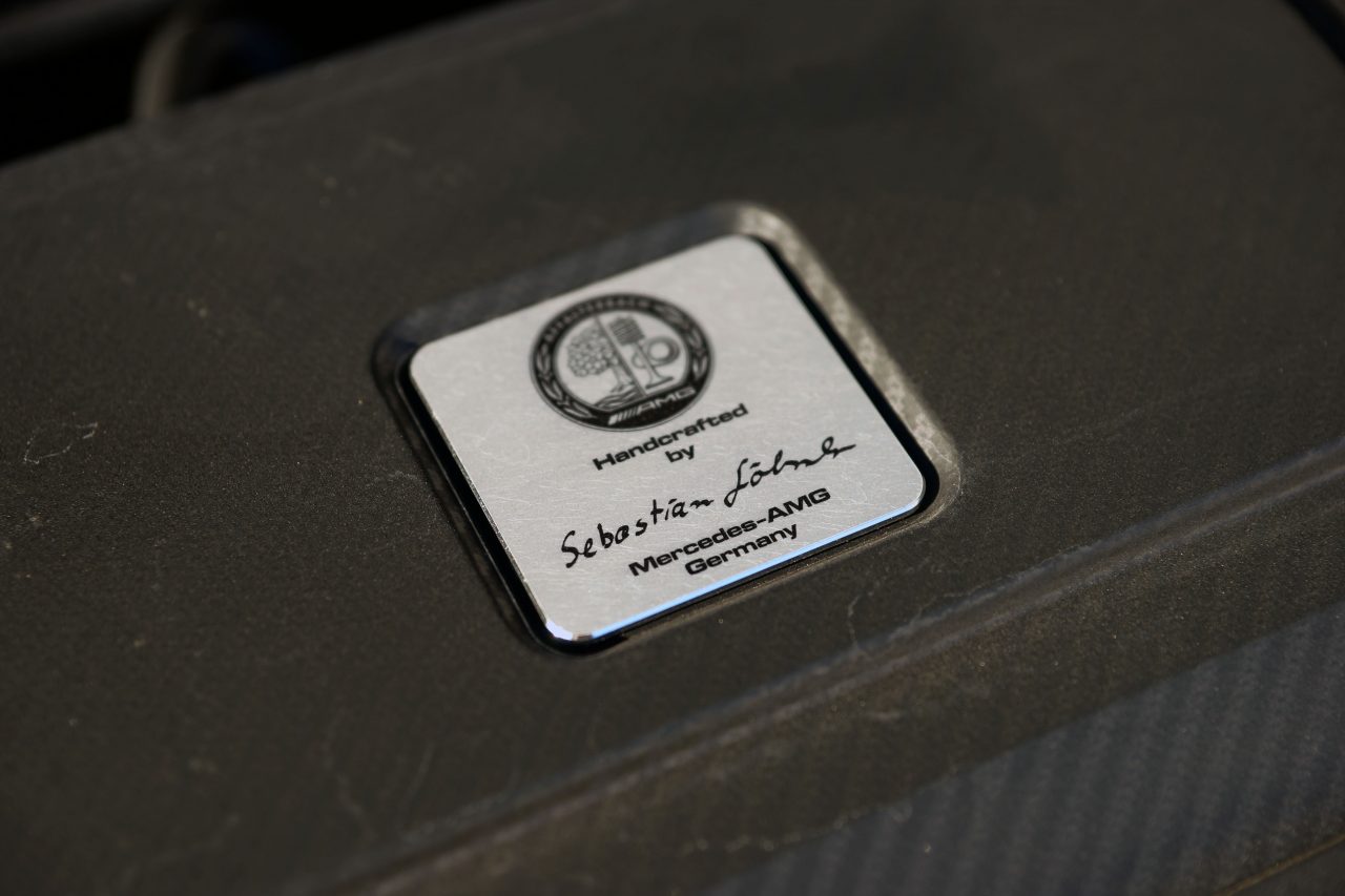 Não se preocupe se não referi a possibilidade de ajustar a sonoridade do sistema de escape, pois este está preparado para acordar toda a vizinhança sempre que ligar o carro. Prepare-se, porque a inveja é uma coisa feia, e o mais certo é começar a receber olhares estranhos, mas… que se lixe! Mantendo-se fiel à história da AMG de “um motor, um homem”, também o motor deste CLA SB 45 AMG foi montado por um só funcionário, neste caso um tal de Sebastian, conforme poderá ver na fotografia do logótipo AMG com a sua assinatura, na tampa do motor.