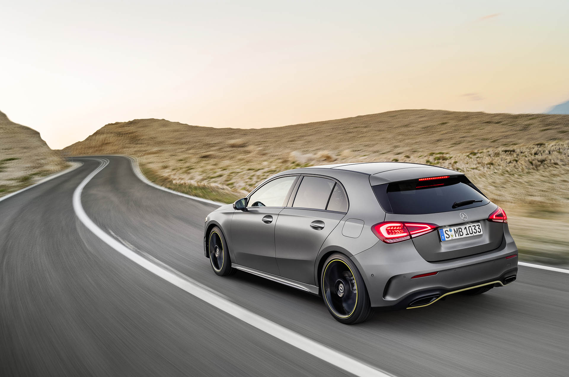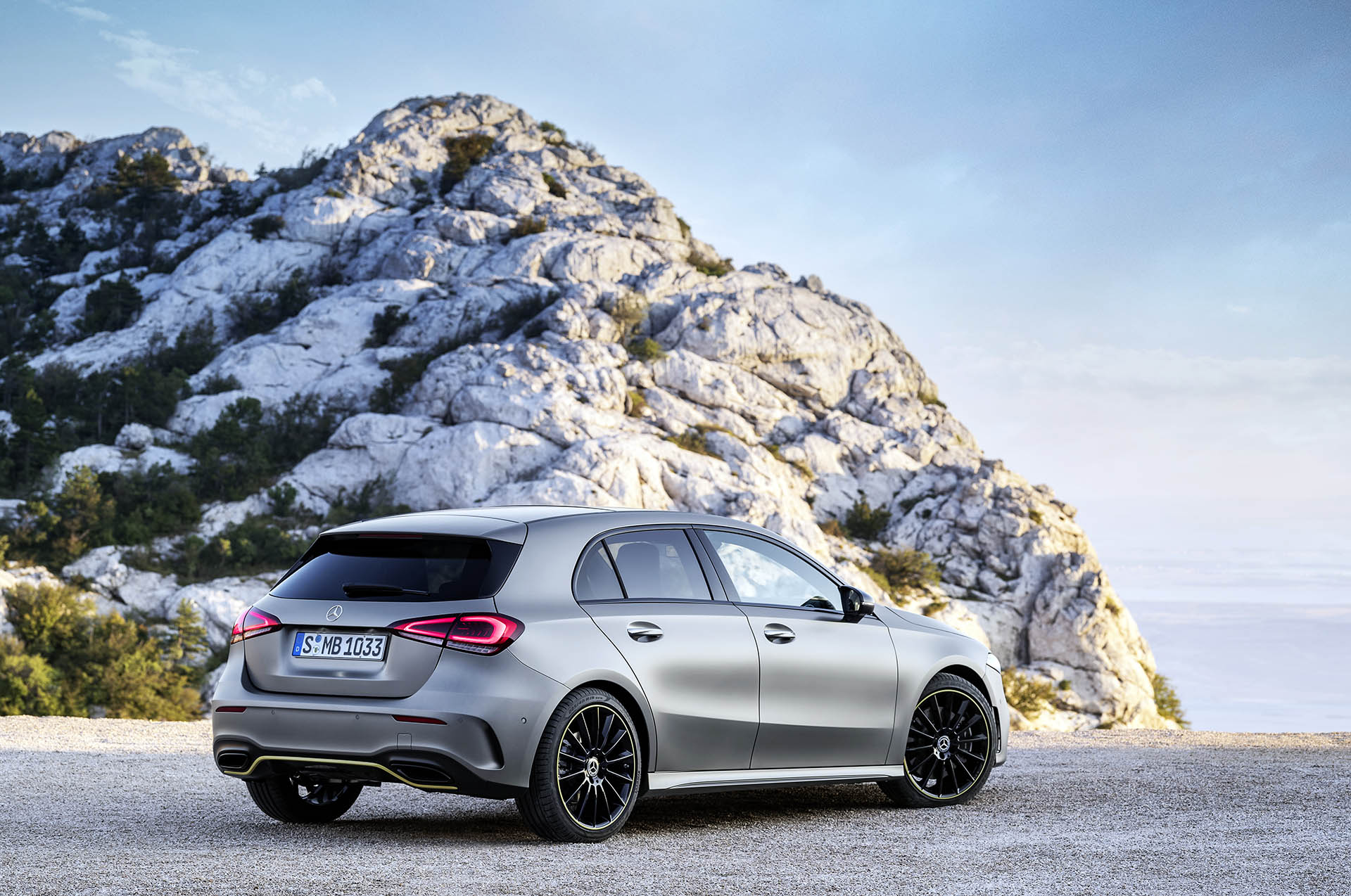 Atrás destaque a aparência mais larga e imponente, para as novas ópticas totalmente LED bipartidas, reflectores integrados no pára-choques traseiro, tal como o difusor traseiro e ponteiras de escape, podendo estas ser “virtuais” ou reais, dependendo da motorização e linha de equipamento escolhido. Com um coeficiente aerodinâmico de 0,25, o novo Classe A torna-se assim no líder de segmento em termos aerodinâmicos.