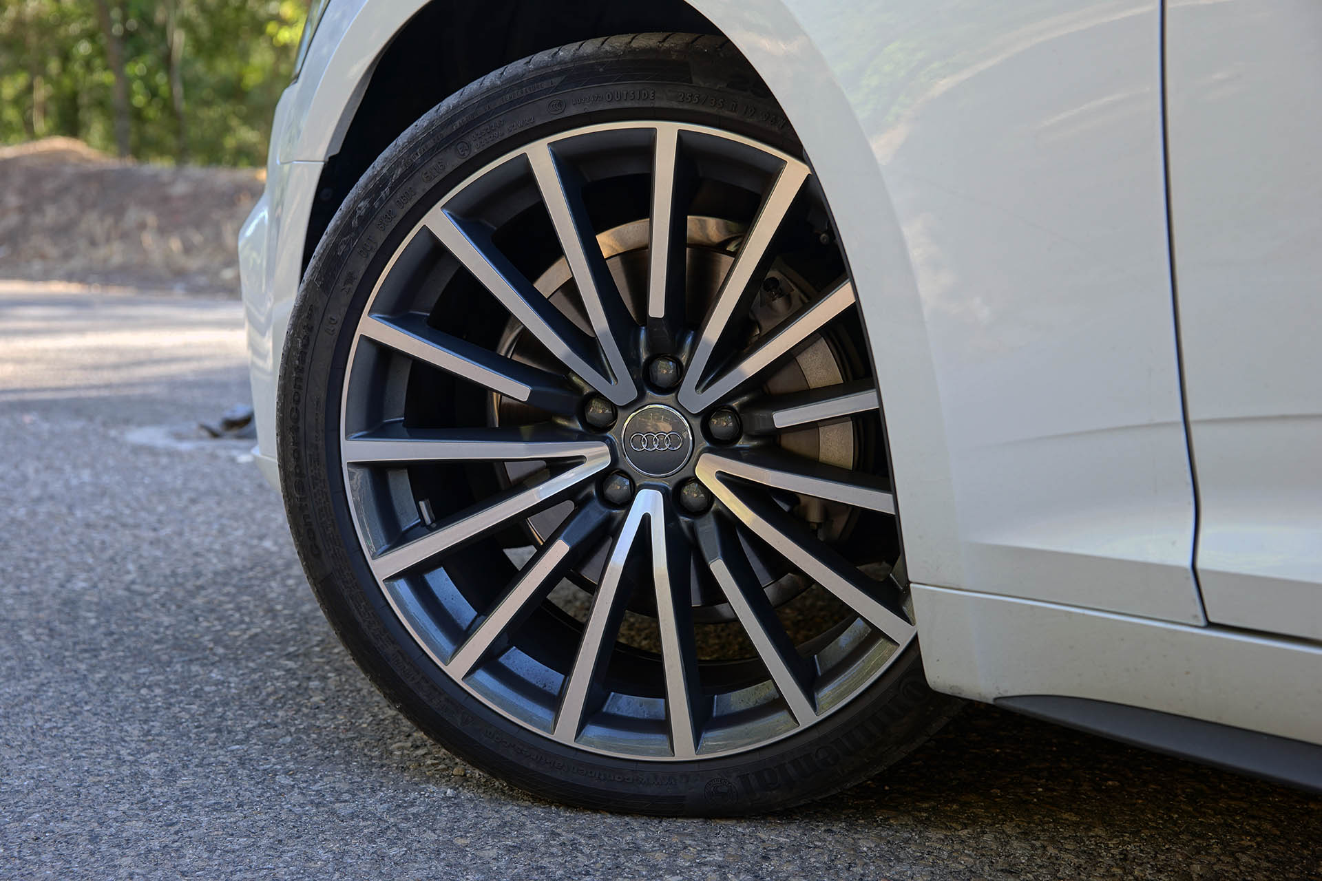 Naturalmente que neste caso em concreto, a elevada lista de opcionais incluídos contribuem para este agradável resultado visual, com detalhes como a pintura Branco Tofana com acabamento metalizado com efeito de cristal, as belíssimas jantes de 19 polegadas multiraios e o pacote exterior S Line. Este último adiciona elementos como os pára-choques desportivos, ponteiras de escape cromadas e grelha reforçada com elementos em alumínio.