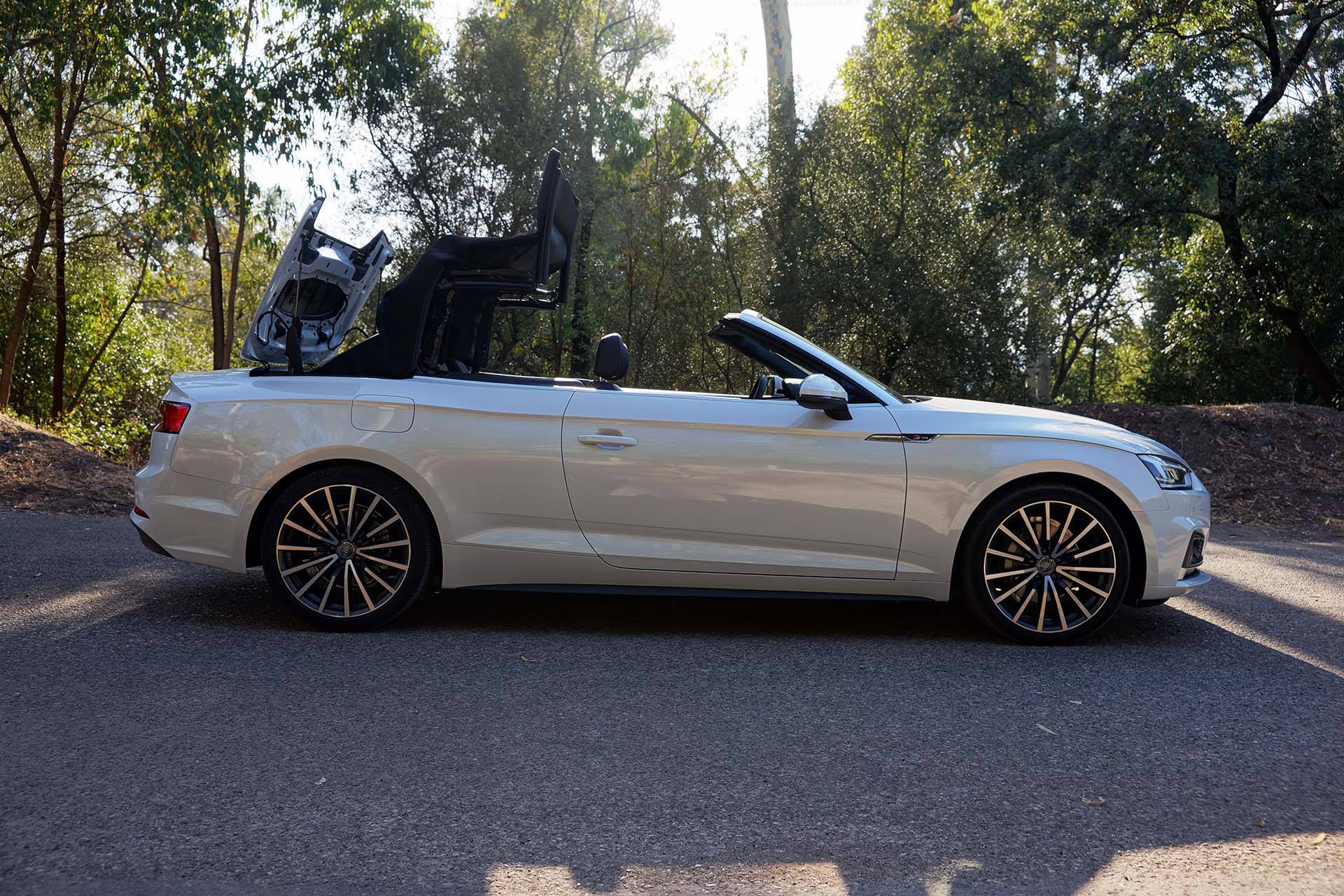 Mantendo-se fiel às suas origens, que remontam ao Audi Cabriolet de 1988, baseado no antigo Audi 80, o novo Audi A5 Cabrio continua fiel à elegante capota de tecido, que como acontece com os seus principais rivais, soube evoluir em termos de qualidade de construção e materiais, tendo o recebido os devidos reforços em termos de isolamento térmico e acústico, ao qual se juntam os vidros mais espessos.