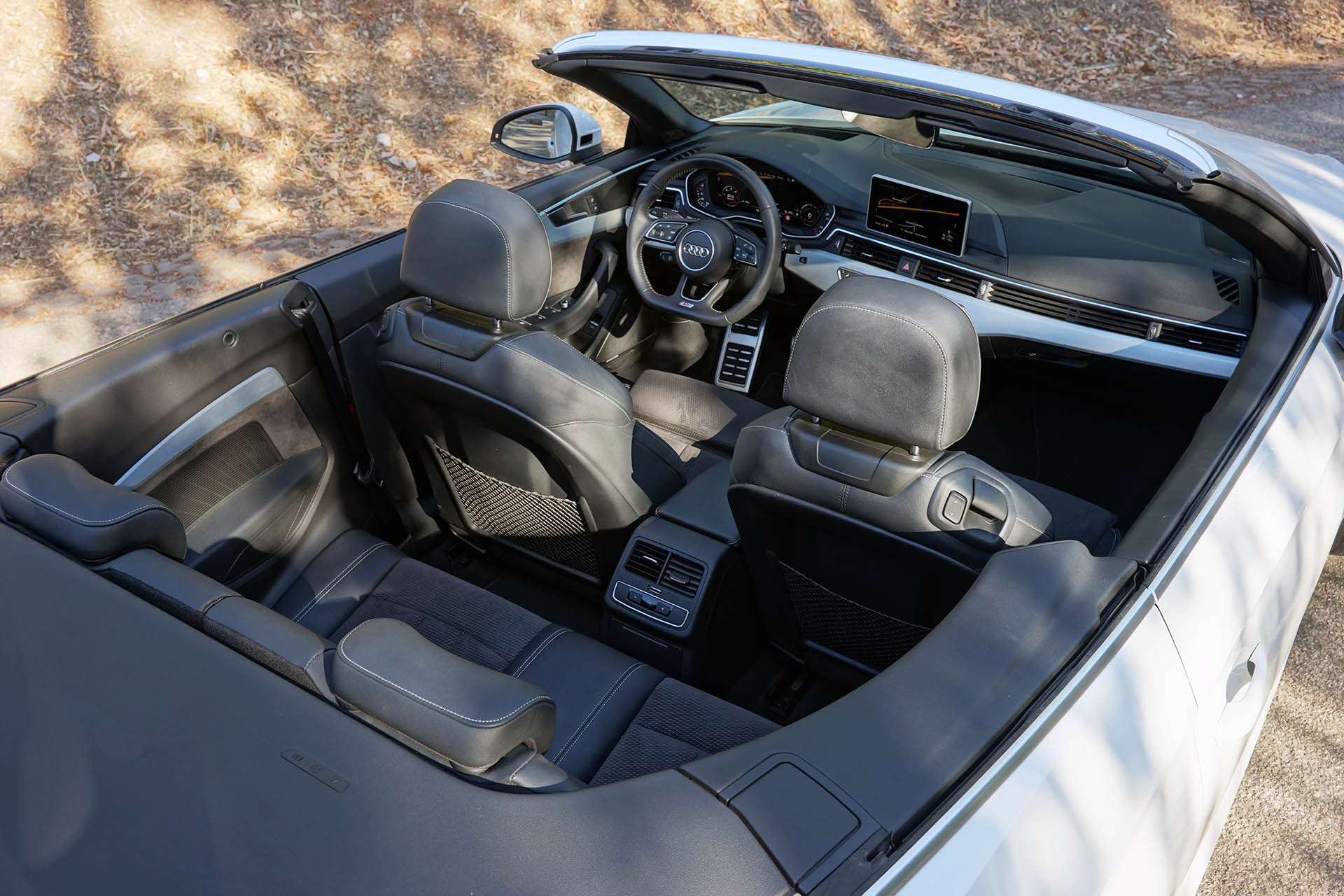 No interior, volta a reinar, como em qualquer Audi moderno, um interior ergonomicamente perfeito, composto por materiais de primeira escolha, e uma montagem isenta de falhas, superior (neste campo) aos seus rivais mais directos, como a BMW e Mercedes. Se em termos de qualidade e ergonomia, nada a apontar, em termos de espaço o A5 Cabrio surpreendeu, ao permitir o transporte de quatro ocupantes de forma confortável, algo raro nos habitualmente limitados lugares traseiros de qualquer cabrio.