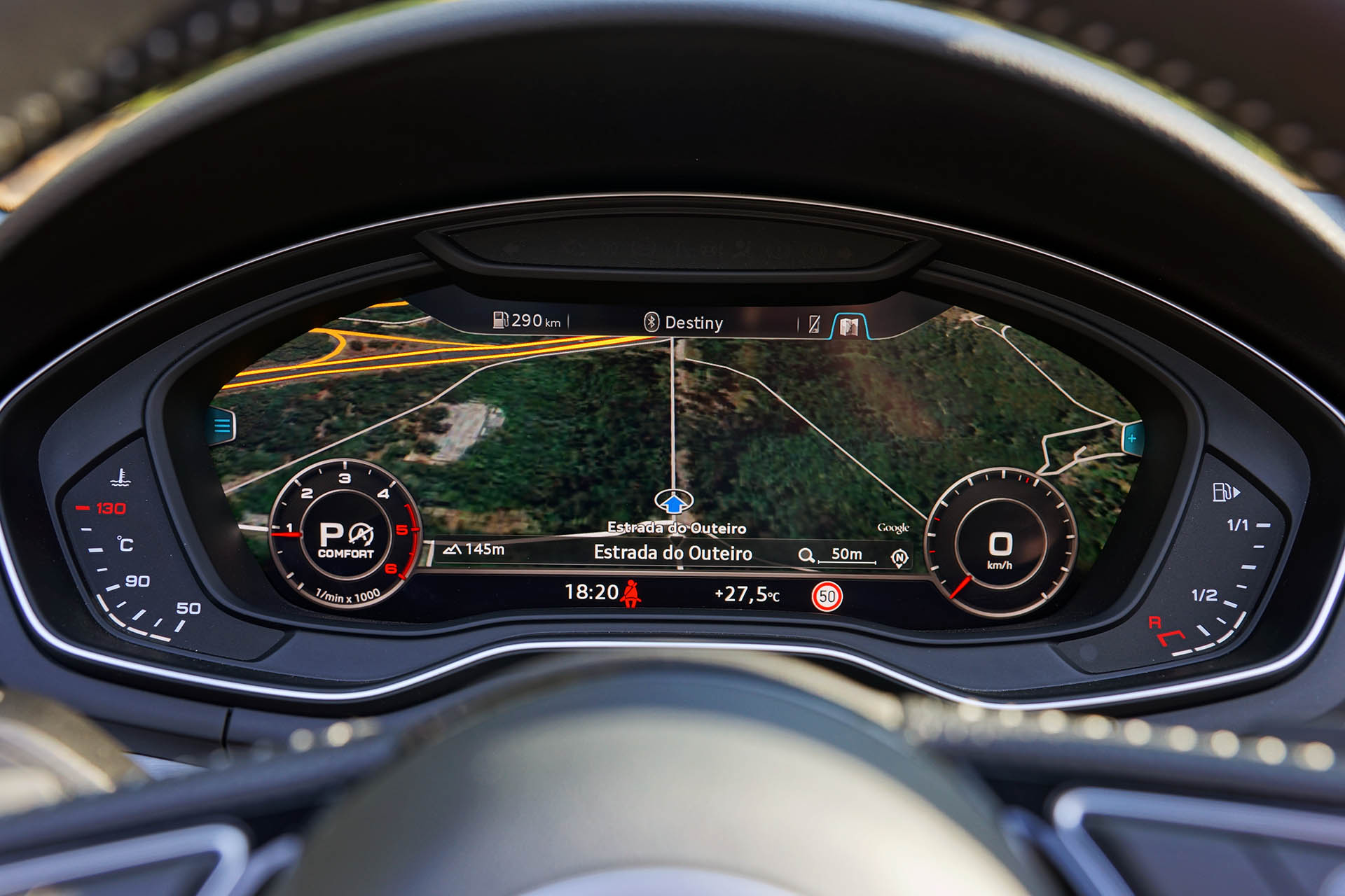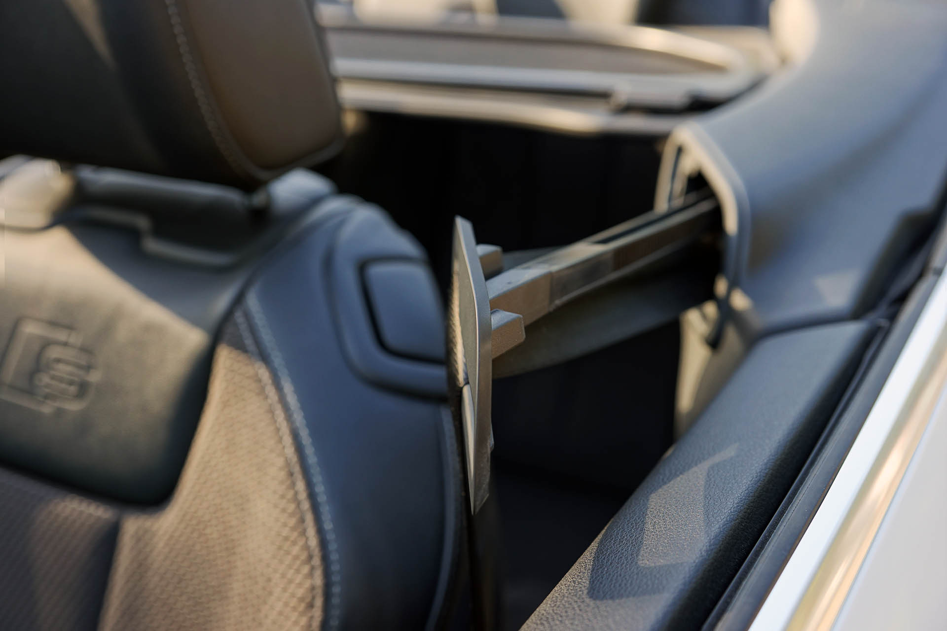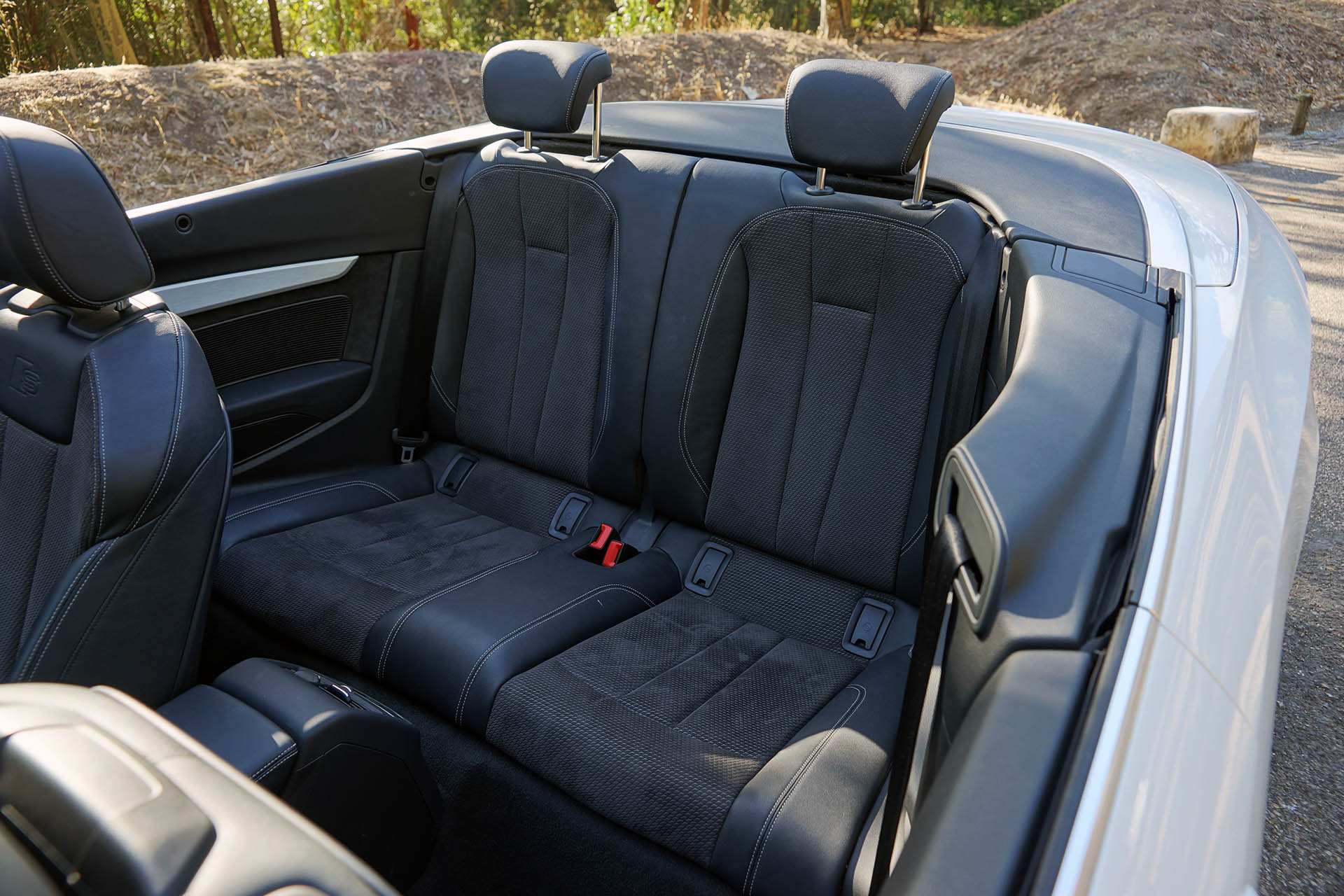 Isto deve-se ao aumento de espaço entre eixos, que embora tenha crescido apenas 14 mm, permitiu conquistar mais 18 mm no espaço para as pernas nos lugares traseiros, graças ao recurso de bancos dianteiros mais compactos. Já que falamos em espaço, a capota, quando armazenada no seu compartimento, apenas rouba 30 dos presentes 380 litros, que ainda assim são menos 100 litros que a versão coupé (480 litros). Regressando ao habitáculo, destacamos a presença do Audi Virtual Cockpit (painel de instrumentos digital) e Head-Up Display, bem como do sistema de infoentretenimento de topo.