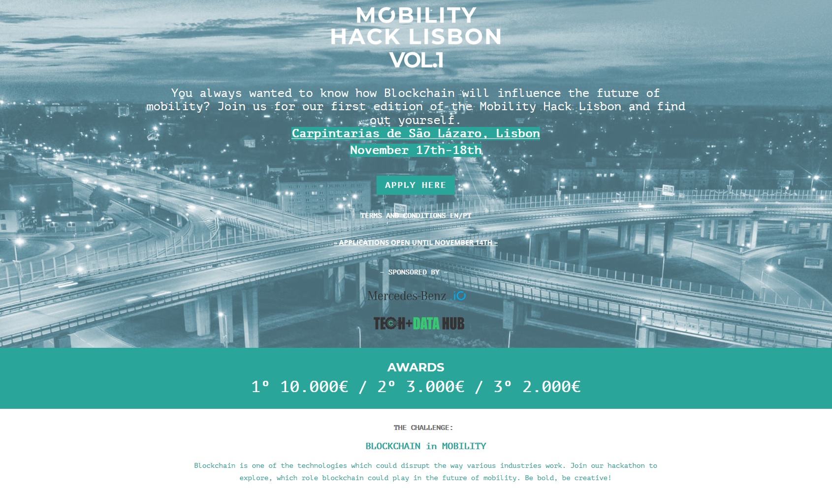“O objectivo foi criar desafios abertos que apelem à criatividade das pessoas que se interessam por estes temas”, reforça Gonçalo Sequeira. O evento tem como objectivo estimular a comunidade crescente na área de Blockchain, dar-lhe espaço para fazer networking, aprender e desenvolver novos desafios em conjunto. Depois de se instalar em Lisboa, no ano passado, a Mercedes-Benz.io escolhe também esta cidade para lançar este desafio pela primeira vez, ao passo que para a Daimler Trucks & Busses Tech and Data Hub, este evento marca a sua chegada a Portugal e é uma oportunidade única para se afirmar no panorama nacional.