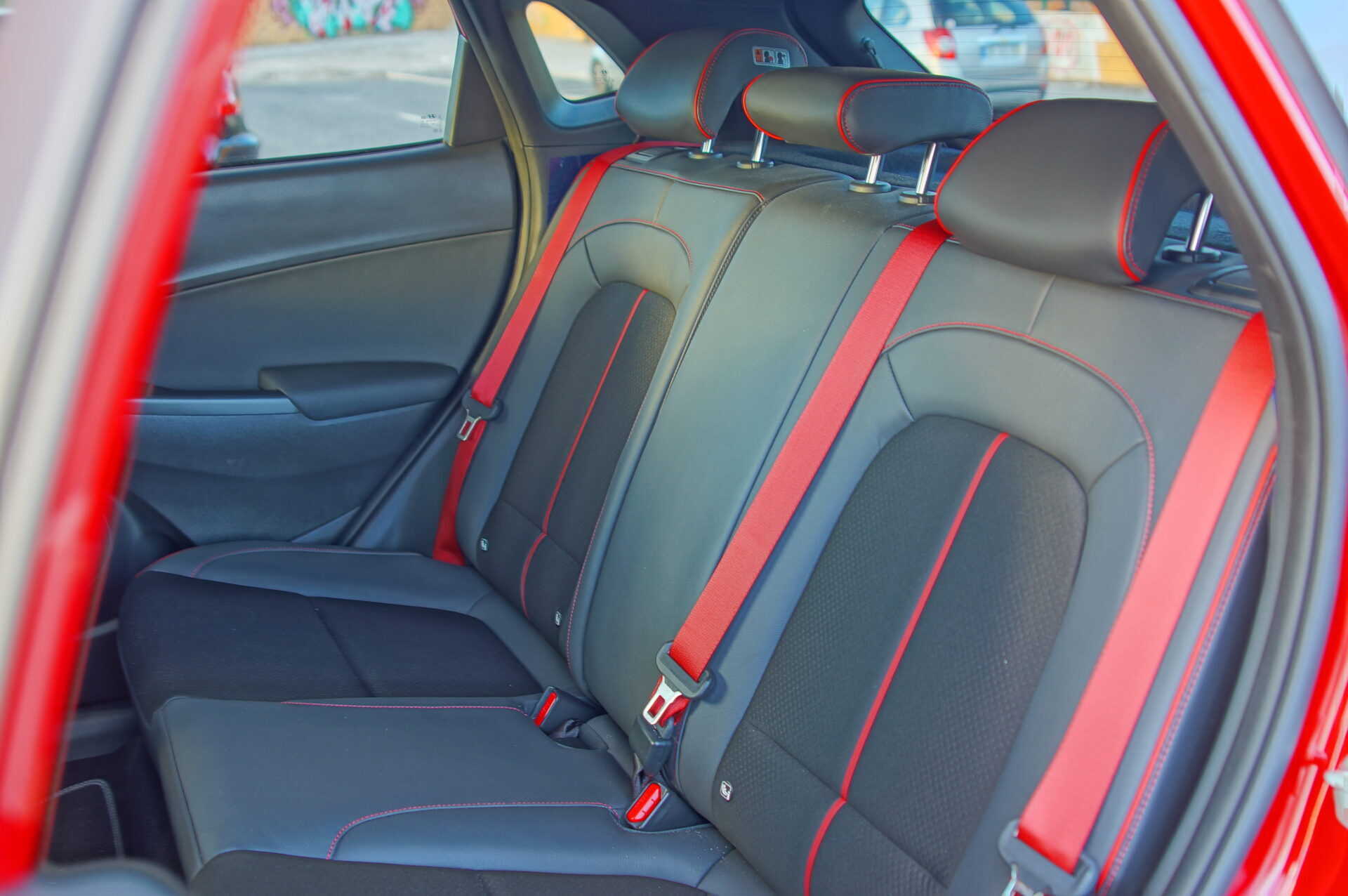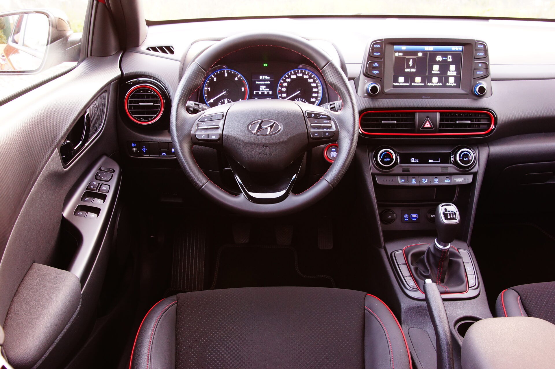 Se no exterior as diferenças eram inexistentes, no interior as diferenças face à versão 1.0 T-GDi testada anteriormente deve-se exclusivamente ao nível de equipamento opcional aqui instalado, que inclui elementos como o opcional pacote de pele e tecido com acabamentos em vermelho, como os cintos, os rebordos dos bancos, e a moldura de elementos como a alavanca da caixa de velocidades e as saídas de ar da climatização.