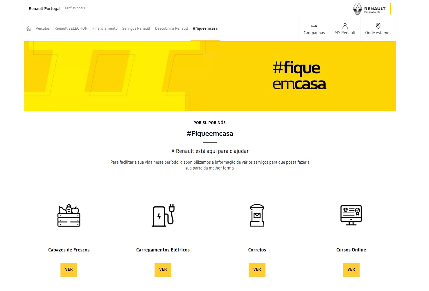 Através da criação de uma simples página web, a Renault Portugal reuniu um conjunto de serviços e utilidades que o ajudarão a permanecer em casa, durante esta fase de estado de emergência que se vive em Portugal. Poderá encontrar nesta página uma lista de lojas para a compra de frescos (vegetais e frutas), farmácias, padarias, supermercados e mercearias, bem como restaurantes e marmitas, todos eles com entregas ao domicílio ou com possibilidade de levantamento no local.