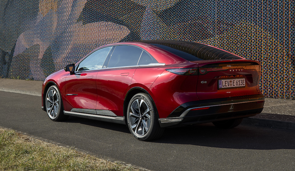 Em termos de design, o Mazda6e marca uma renovação da linguagem ‘Kodo – Alma do Movimento’ através de «linhas fluidas», iluminação dinâmica e um spoiler traseiro extensível que «melhora a estabilidade». As jantes aerodinâmicas de 19 polegadas e as oito cores disponíveis — entre elas o Soul Red Crystal e os novos tons Melting Copper e Aero Grey — completam um visual «moderno e atlético».