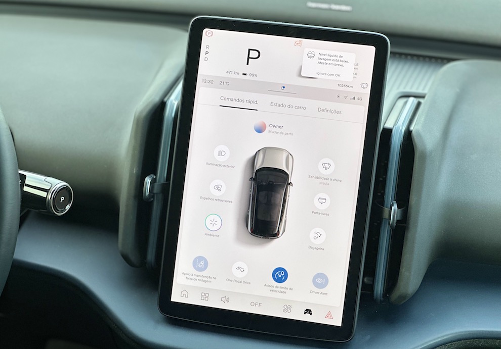 O que não muda, claro, é o carácter minimalista do habitáculo, que continua com os botões físicos reduzidos ao essencial: além dos do volante, ficam apenas os dos vidros ao centro. Existe um botão físico para os quatro piscas no tejadilho, tal como o SOS, enquanto as restantes funções básicas surgem como controlos tácteis, incluindo trancar e destrancar portas, iluminação ou desembaciamento do vidro da frente.