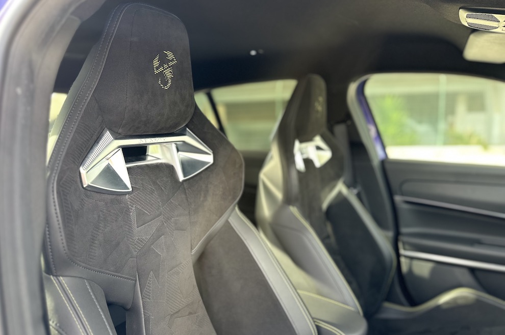 Por dentro, este 600e continua possuído pelo espírito de pista. Os bancos Sabelt em alcantara e pele, com apoios de cabeça e lombares integrados, abraçam-nos como se estivéssemos num casulo e garantem uma posição perfeita para atacar curvas, embora em viagens longas a sua rigidez comece a ter impacto negativo no conforto.