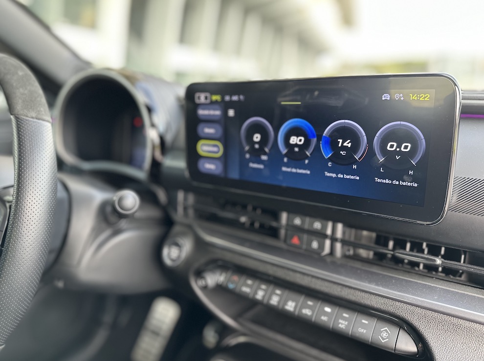 Já o sistema multimédia impressiona pela rapidez. O ecrã de 10,25 polegadas pode parecer estreito, mas é dos mais fluidos que usámos este ano, com CarPlay e Android Auto sem fios. No menu ‘Desempenho’, controlamos parâmetros da bateria, potência, acelerações e até medimos força G. É aqui que também podemos activar um som artificial de motor a combustão projectado para o exterior. Não faz sentido? Talvez. Mas impressiona e, no fundo, é um piscar de olho às suas origens térmicas.