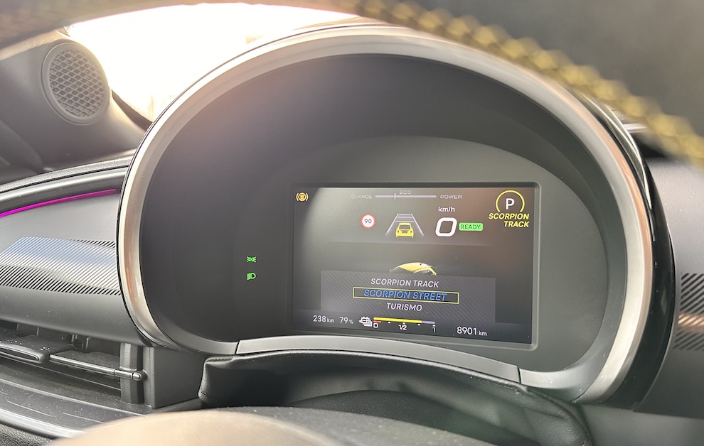Já nos modos de condução, não há espaço para “economias”, embora o ‘Touring’ amanse o escorpião; contudo, quer o ‘Scorpion Street’, quer o ‘Scorpion Track’ trazem ao de cima os instintos mais competitivos deste modelo, ambos com uma aceleração super-disponível.