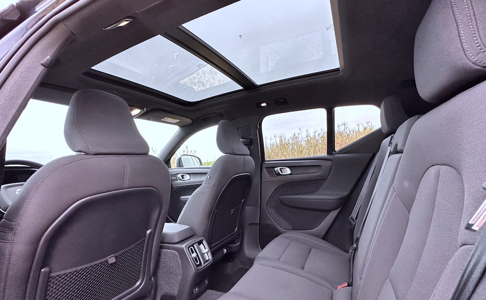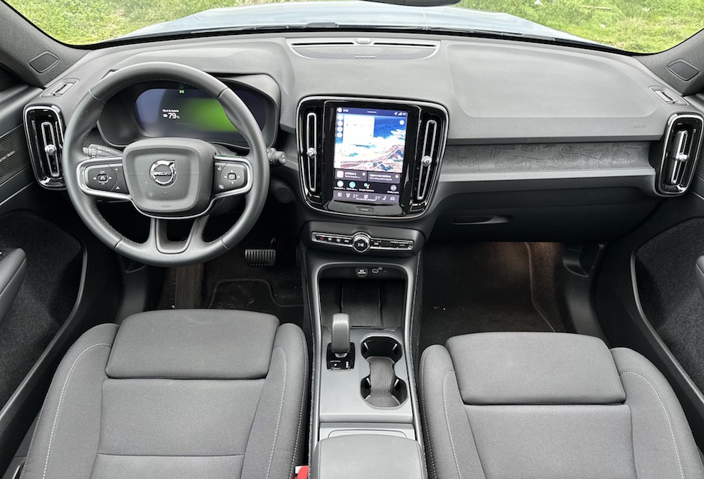 Assim, o habitáculo compensa parte da falta de ousadia visual exterior (lembramos que estamos a avaliar unicamente a versão cedida pela Volvo e não a gama geral). O revestimento das portas e o piso em tecido estilo alcatifa criam um ambiente acolhedor e os bancos vêm com os estofos de série (Tecido Premium), mas é possível optar por camurça (mais 1 562 euros). O tecto panorâmico deixa-nos com mais luz e sensação de amplitude, embora a falta de uma cortina física limite a privacidade e o conforto em dias de sol forte – a crítica é a mesma do EC40.