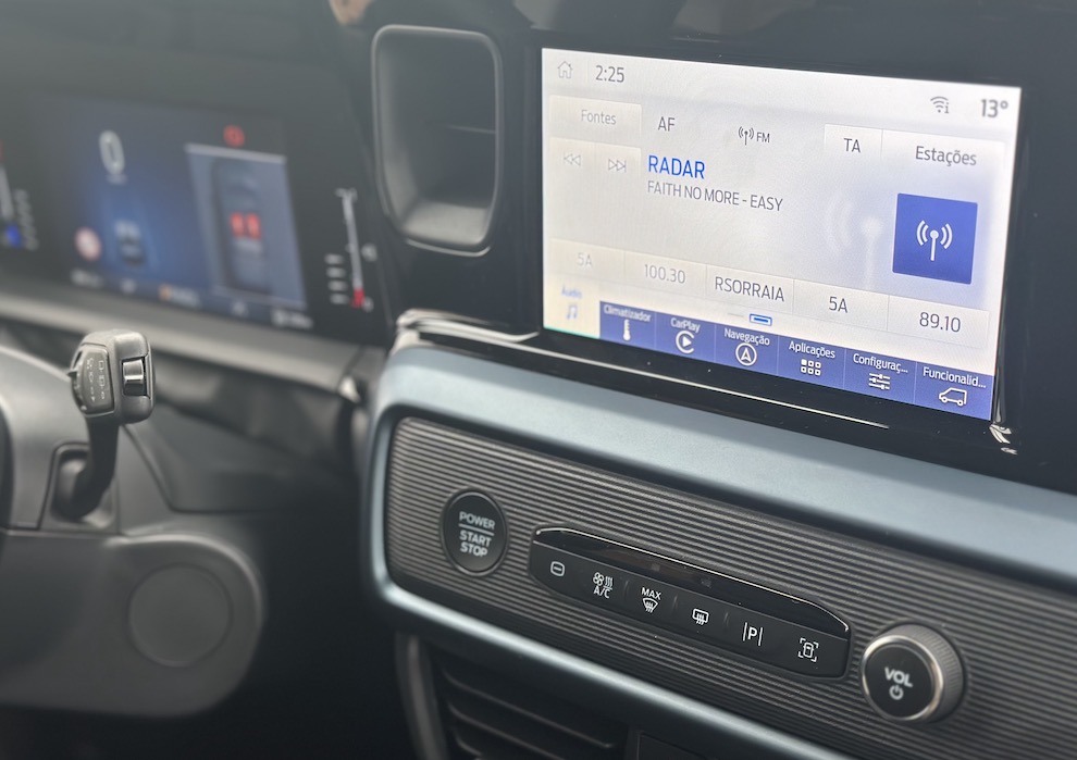 O sistema SYNC 4 personifica-se num ecrã táctil de oito polegadas com Apple CarPlay e Android Auto sem fios (muito prático), além do Pack Driver Plus com navegação, tudo de série. Contudo, o ecrã é pequeno para os padrões actuais e fica encaixado numa moldura que o parece tornar ainda mais pequeno. Já os menus do sistema SYNC surgem organizados por cartões que nos dão acesso a listas de opções para parametrização.