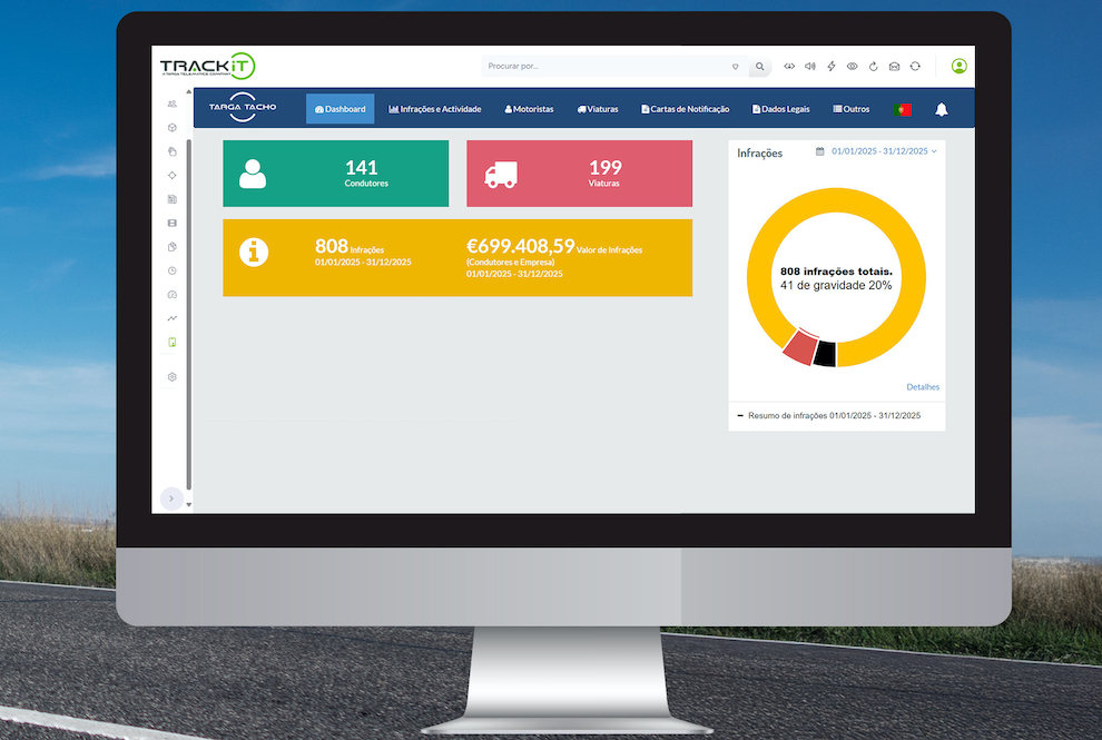 No transporte e logística, a conformidade é um desafio muito relevante e, mais uma vez, a nossa solução Targa Tacho [imagem em cima] automatiza a recolha de dados do tacógrafo digital e analisa automaticamente infracções, reduzindo riscos legais e reforçando uma cultura de compliance.