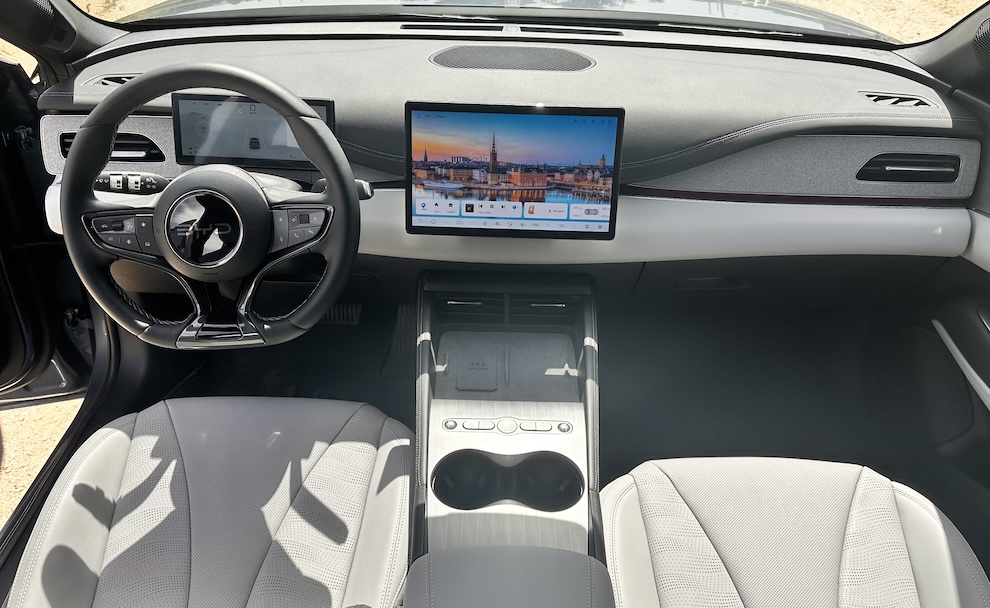 A base é a já nossa conhecida DM-i, que já experimentámos no Seal U, além do 6 Sedan: um sistema híbrido plug-in (aqui de 212 cavalos) e uma bateria LFP (19 kWh). Como já tínhamos concluído noutros testes, esta abordagem resolve o maior problema dos eléctricos, sem abdicar da condução em modo EV no dia-a-dia; e, como sempre, esta gestão é nossa, dando uso ao selector ‘HEV/EV’ que está na consola central.